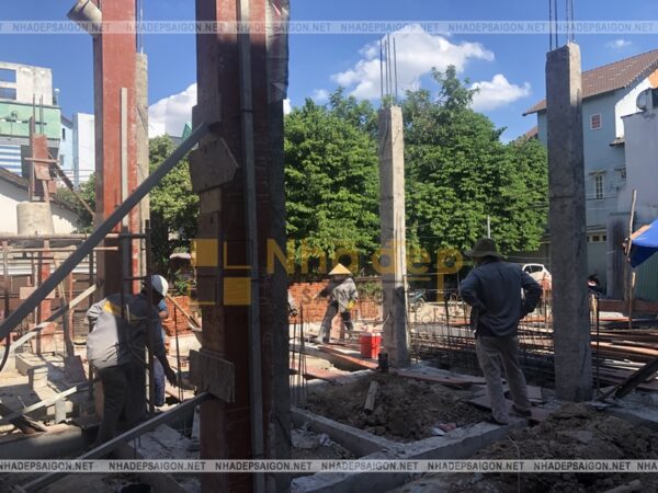 Anh chị thân mền, hôm nay Nhà Đẹp Sài Gòn xin cập nhật tiến độ thi công công trình nhà phố Quận Bình Thạnh. Anh em thi công của Công ty Nhà Đẹp tiến hành gia công lắp dựng thép và đổ bê tông đà kiềng. Liên tục công việc tiếp theo Anh em thi công gia công và đổ bê tông cột tầng trệt.Sau đây là một số hình ảnh thực tế tại công trường.