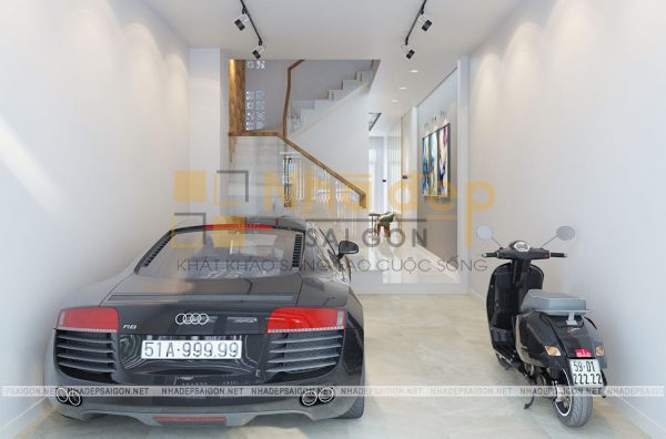 Thiết kế kiến trúc phía ngoài của ngôi nhà có sự đồng nhất về cách tạo hình. Nhà phố với sắc trắng làm tone màu chủ đạo. Màu trắng cũng dễ phối hợp với các gam màu khác và được xem là màu đặc trưng trong xây dựng nhà ở. Mẫu nhà này có tạo hình bố cục vuông vắn, sự liên kết mạch lạc chặt chẽ của các khối hình. Đồng thời công năng cũng được đảm bảo đủ tiện nghi cơ bản.