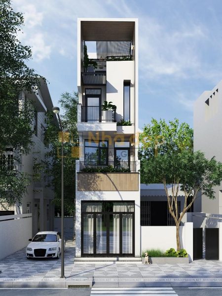 Mặt tiền được thiết kế đơn giản, chú trọng tới không gian xanh giao hòa với thiên nhiên. Việc tận dụng khoảng không gian để bố trí ban công, sắp xếp khu vực đặt cửa sổ, sảnh thông tầng, giếng trời là rất cần thiết. Giảm bớt đi phần nào sự tù túng, khuôn khổ khép kín của loại hình nhà lô cao tầng. Công trình nhà ống còn sử dụng khoảng diện tích vừa đủ để làm sân trước có cổng và tường bao vây quanh. Tạo cảm giác an toàn và yên tâm hơn cho gia chủ.