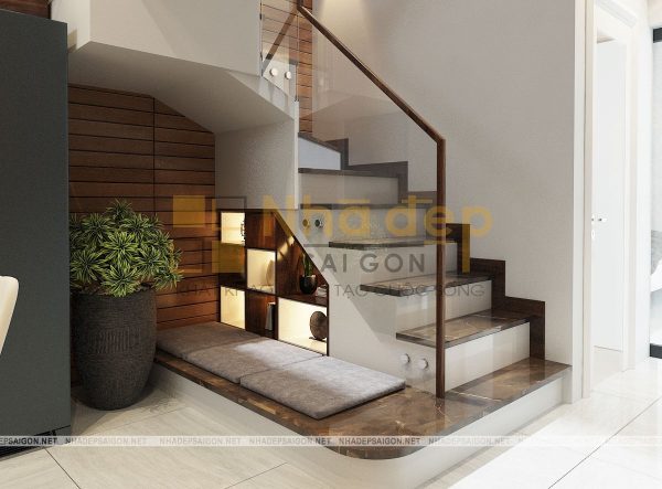 Công trình nhà phố hiện đại quận 6 chị Thảo với tạo hình bố cục vuông vắn, sự liên kết mạch lạc chặt chẽ của các khối hình. Kiến trúc sư đã tính toán khoảng diện tích phù hợp để sắp xếp bố trí cửa sổ, giếng trời, sảnh thông tầng ở vị trí hợp lý để ưu tiên lấy gió lấy sáng lưu thông không khí hiệu quả cho căn nhà. Cửa sổ và cửa chính căn nhà sử dụng kính sáng cường lực đúng chuẩn phong cách hiện đại.
