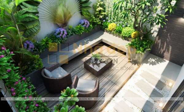 Màu sắc cảnh quan sân vườn nghỉ dưỡng vô cùng hài hòa. Ngoài màu xanh tự nhiên của cây xanh, thảm cỏ cũng có thể trang trí thêm màu sắc từ loại hoa đa sắc màu, tiểu cảnh, vật dụng trang trí khác. Khi bước chân vào những không gian sân vườn theo phong cách này, con người sẽ có giảm giác yên bình, sự cân bằng và thư giãn.