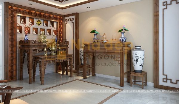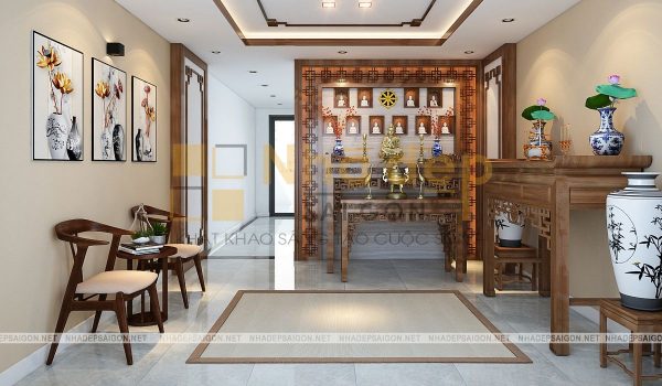 Không gian phòng thờ nên được sử dụng các màu sắc trung tính và trầm tối của các loại gỗ tự nhiên vừa đem lại không khí ấm cúng mà còn mang lại vẻ đẹp thẩm mỹ hiện đại cho cả căn nhà. Ánh sáng trong phòng thờ nên là ánh sáng màu vàng dịu đảm bảo được yếu tố ấm cúng, trang trọng, không còn lạnh lẽo cho không gian thờ cúng.