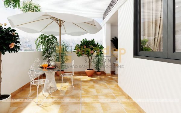 Hệ thống mái sở hữu độ dốc nhất định giúp cho khả năng thoát nước, chống đọng nước, chống thấm,… hiệu quả một cách tuyệt đối. Gam màu nâu xám của mái kết hợp với gam trắng sữa tinh tế cho cảm nhận không gian sang trọng, cuốn hút, góp phần tăng độ chiếu sáng thực tế cho ngôi nhà giúp ngôi nhà luôn thoáng mát, không khí trong lành, thư thái.