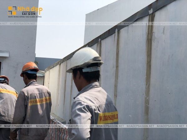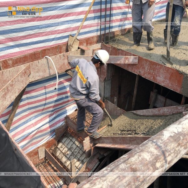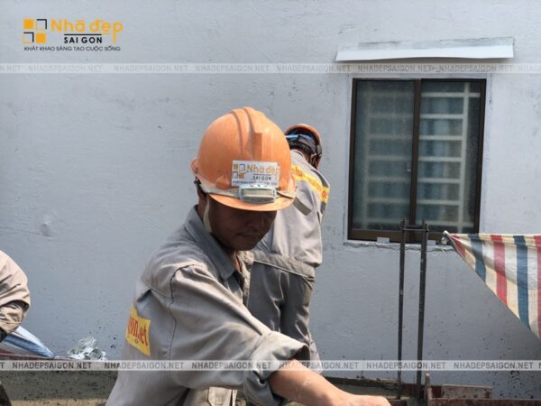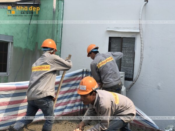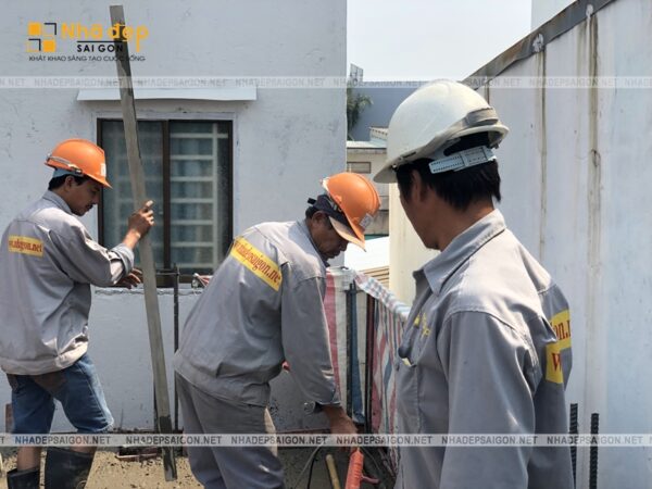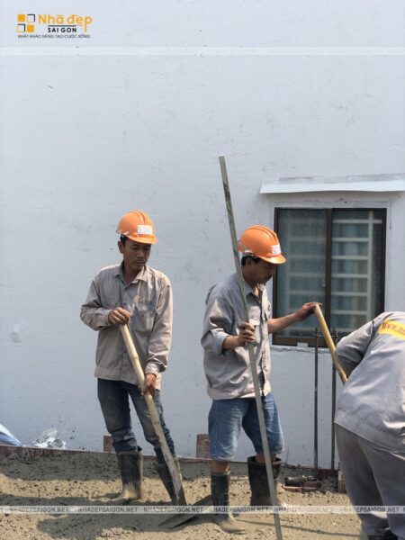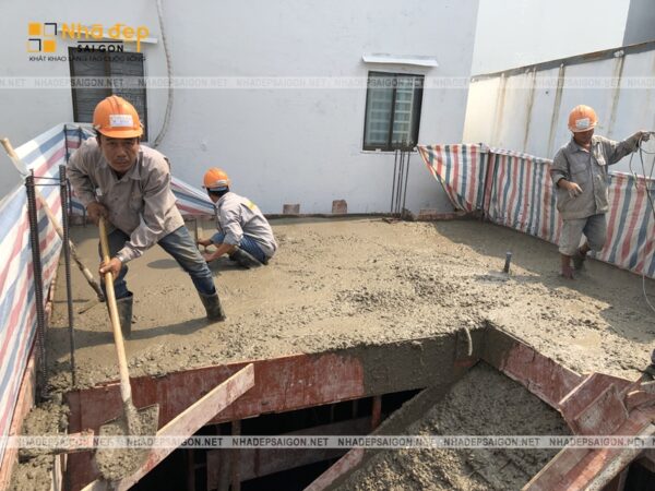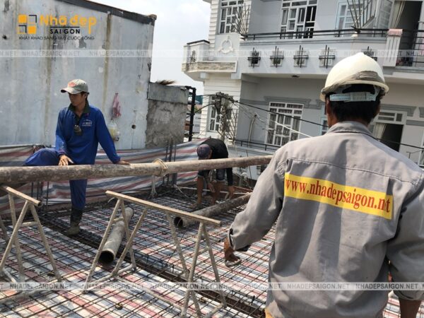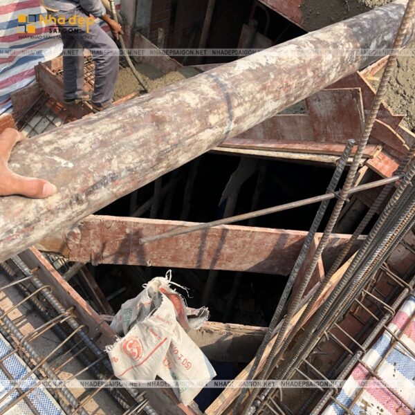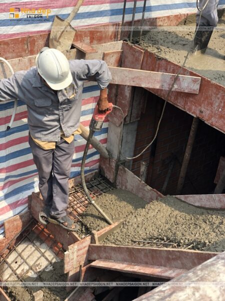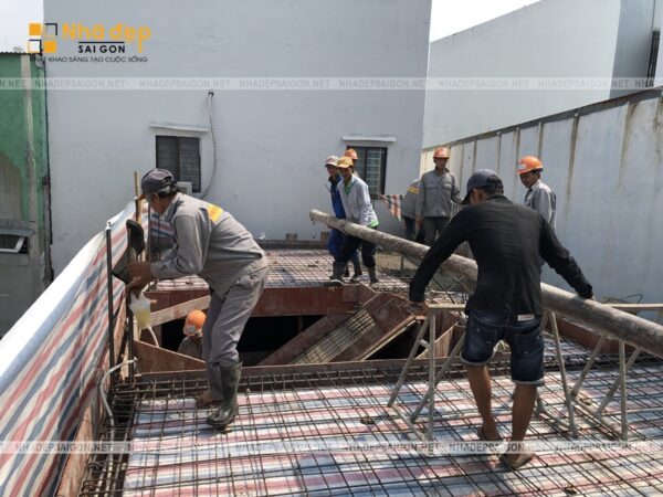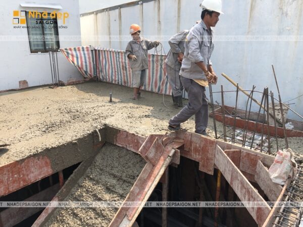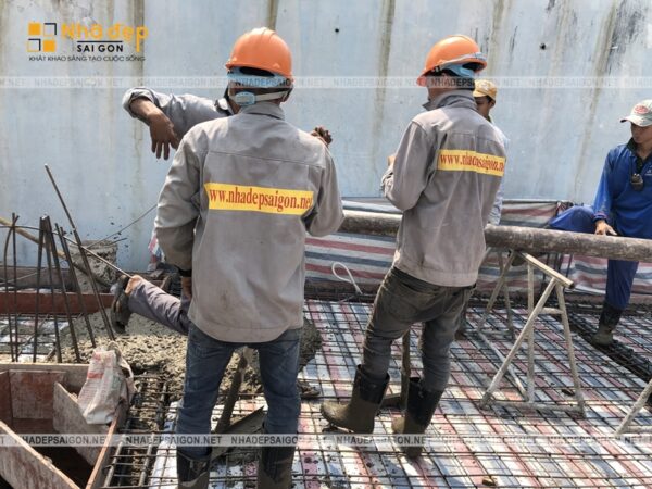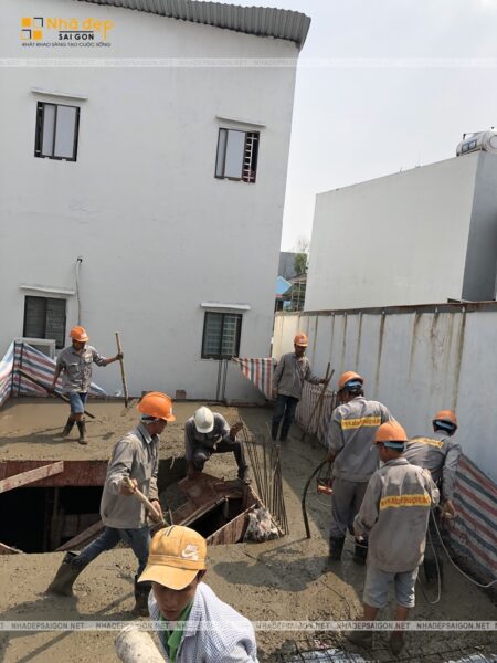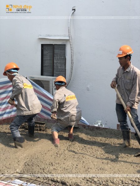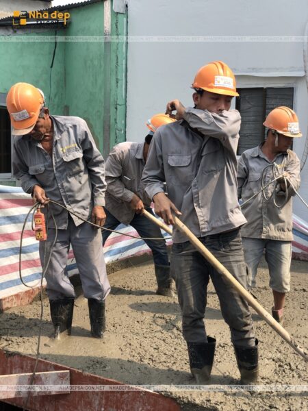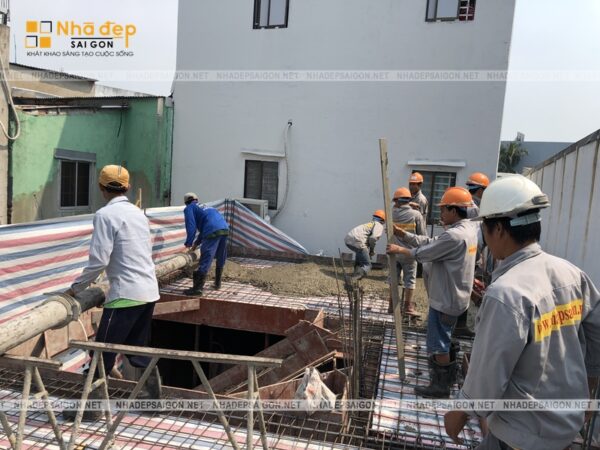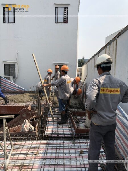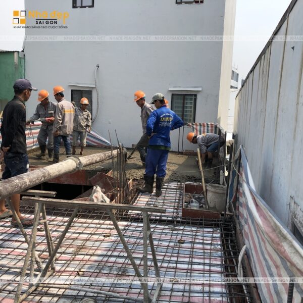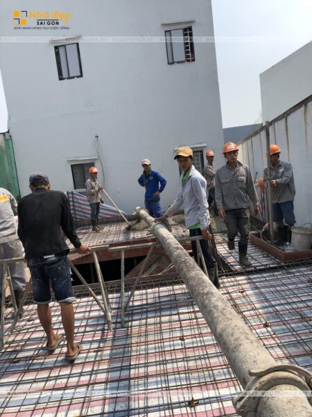 Chào anh chị thân mến, Hôm nay Công ty Nhà Đẹp tiến hành đổ bê tông Lầu 01 công trình nhà phố quận 08. Để có chất lượng phần thô cao nhất, toàn bộ bê tông đều là bê tông tươi. Với công trình nằm trong hẻm nhỏ để đạt được điều ấy là một sự nỗ lực không nhỏ của tổ bơm bê tông. Đường ống xa, xe bơm phải đậu ngoài đầu hẻm – chỉ riêng chuyện xin phép và vận động sự thông cảm của bà con lối xóm đã mất bao nhiêu thời gian rồi. Nhưng mọi việc đều đã được giải quyết, Kế hoạch thi công vẫn đúng như ban đầu , từng mẻ bê tông được bơm vào công trình. Anh em thợ của công ty Nhà Đẹp thi công hối hả để xe bê tông và xe bơm về trước giờ cao điểm. Sau đây là một số hình ảnh thực tế tại công trường do ban biên tập công ty Nhà Đẹp ghi lại.